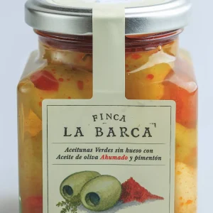 Aceitunas Gordal deshuesada con Aceite de Oliva Ahumado y Pimentón – Finca La Barca