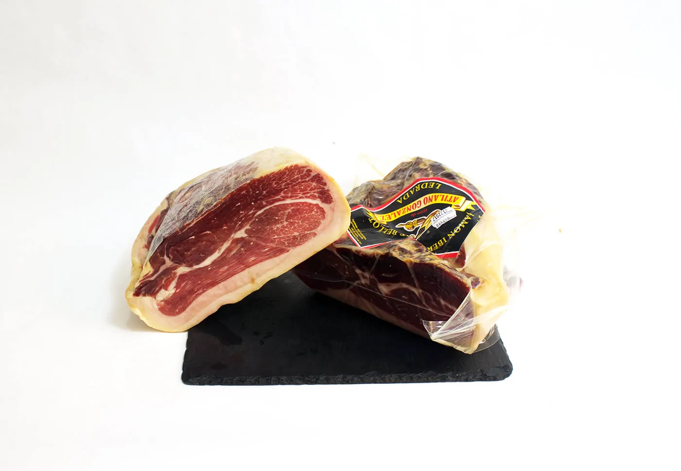 El Centro de Jamón ibérico de Bellota de Atilano González tiene un color intenso y una grasa untuosa que dan un sabor totalmente agradable pero nada salado, con un regusto sin igual. Como siempre, la curación se lleva a cabo de forma totalmente artesanal en bodegas naturales y con un mínimo de curación de 34/36 meses dependiendo de su tamaño.