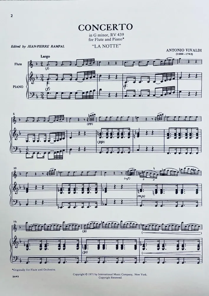 Publicado en 1728 como parte de una colección de seis conciertos para flauta, «La Notte» es notable por ser el único en tonalidad menor y por su estructura de seis movimientos, a diferencia de los tres movimientos habituales en los otros conciertos de la misma colección.