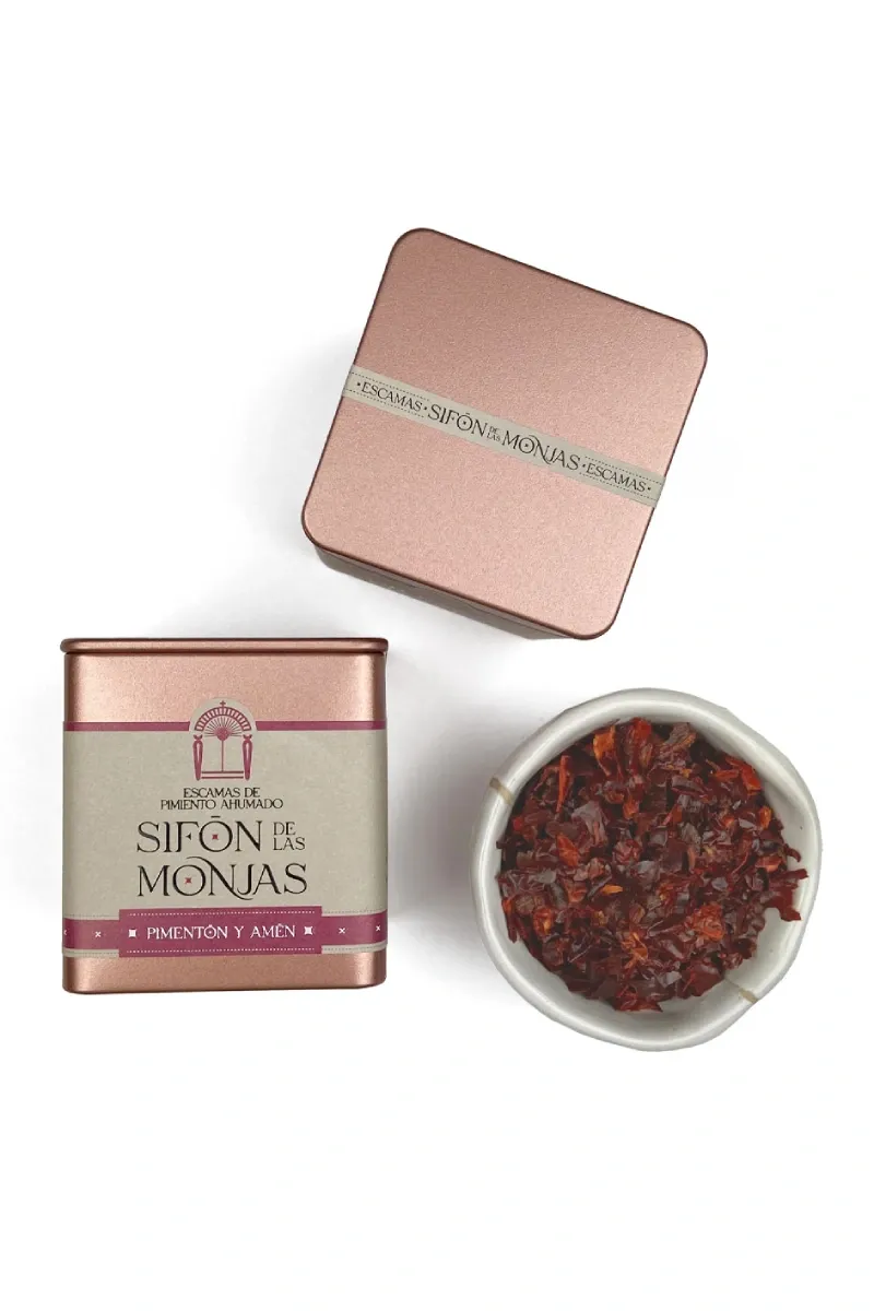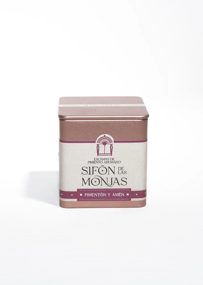 Sifón de las Monas se trata de una marca española afincada en Plasensia, especializada en la elaboración de forma artesanal de pimentón con D.O.P. de la Vera. Cuentan con su propia cosecha, lo que les permite el control de todo el proceso de producción, desde la sección de semillas hasta el molido del pimiento. El proceso de secado se realiza en leña de encina en secaderos de piedra, de forma artesanal y tradicional.
