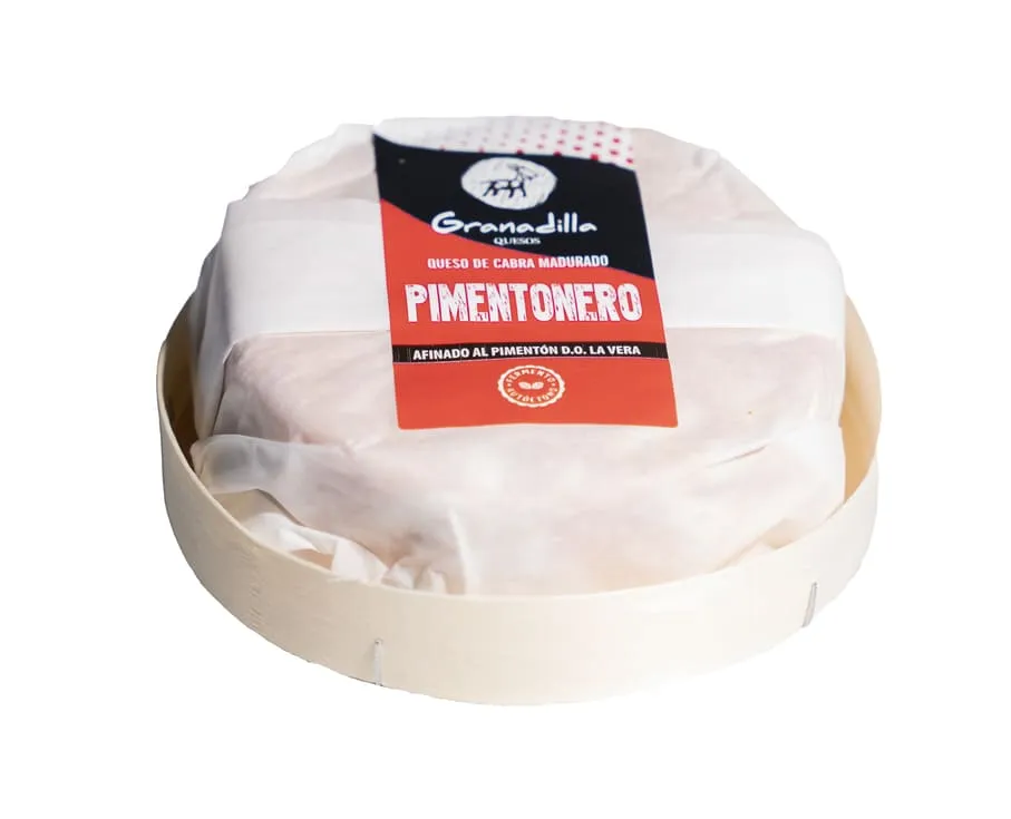Exquisito queso de corteza enmohecida madurado de leche cruda de cabra y afinado con pimentón con Denominación de Origen de La Vera. Elaborado por Quesería Granadilla y alabado por la nomenclatura “Alimentos de Extremadura”.