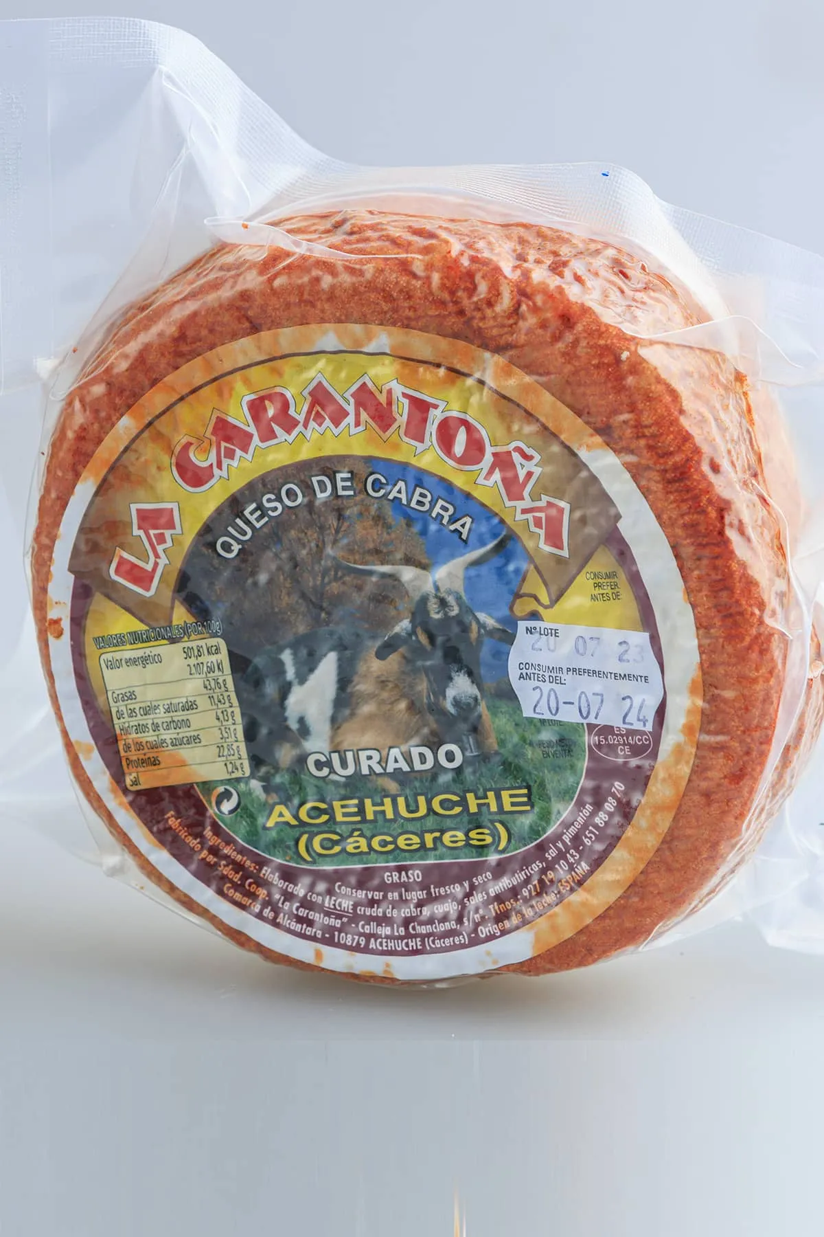 La zona de Acehuche, en la provincia de Cáceres, cuenta con una gran tradición quesera. El queso de cabra curado con Pimentón de La Carantoña es un queso de corteza dorada bañada en pimentón. Elaborado de forma artesanal con leche de cabra, cuajo natural y pimentón de la Vera dulce, tiene un presado manual, que da lugar a un queso de sabor intenso, con un ligero picor y un fuerte retrogusto que enamorará a los amantes del queso de cabra.
